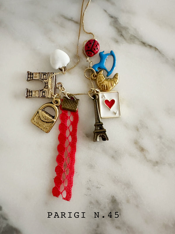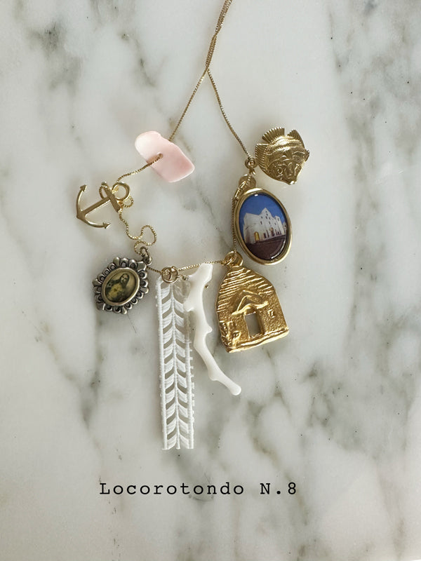 Sono composti da una catenina in argento 925 placcato oro 18 kt e ciondoli di diverso materiale che evocano luoghi e sensazioni tipiche di un posto.