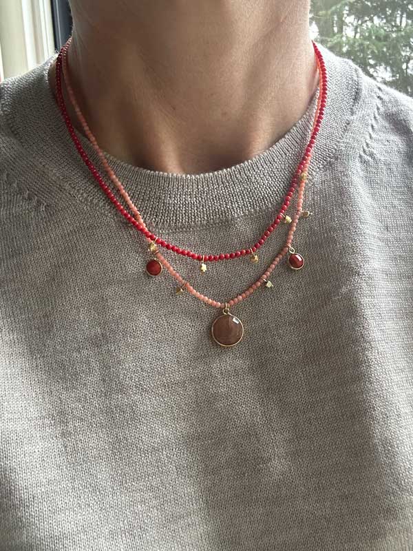 Pretty alone or combined with other necklaces, on tanned skin, for a super gypsy look.