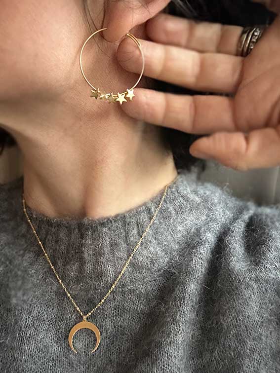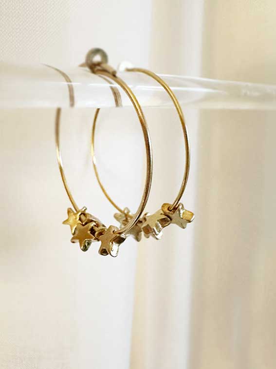 Five small passing stars that slide on a thin circle, clinging to each other. Circle diameter: 3 cm 18kt gold plated silver