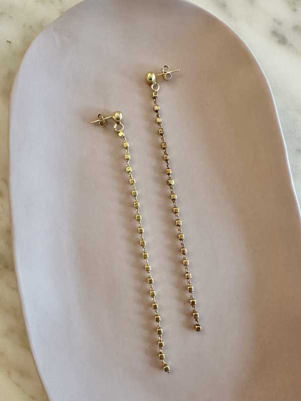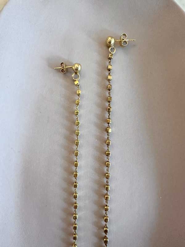 Un monorecchino minimal ma d'effetto, con cubetti in rgento placcato oro.